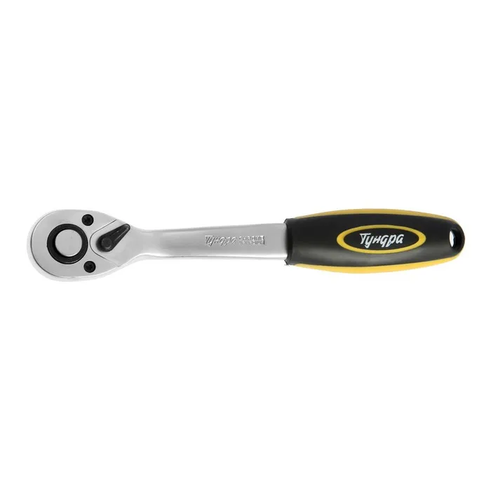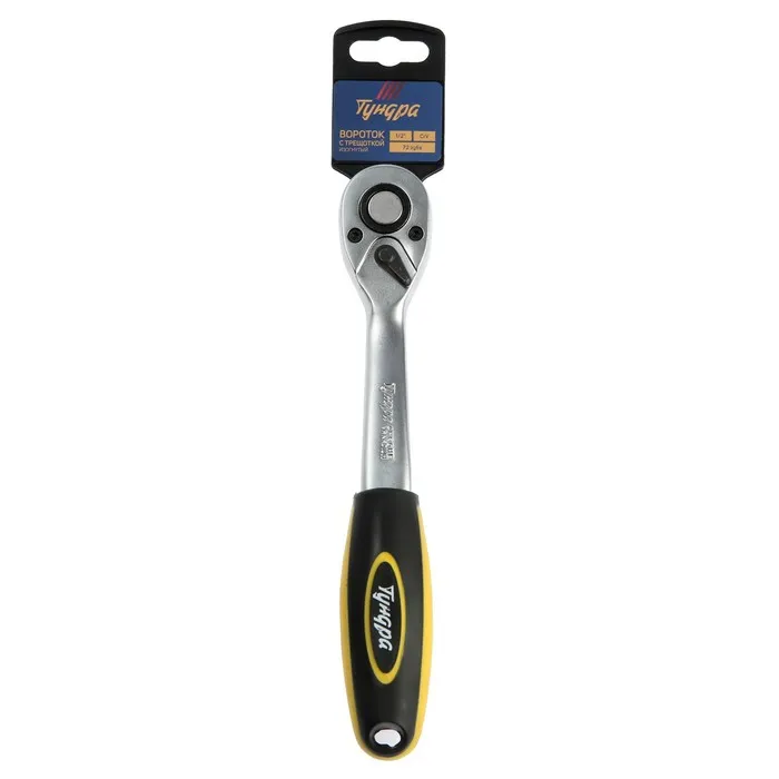 Вороток с трещоткой ТУНДРА предназначен для монтажа и демонтажа крепёжных элементов. Прорезиненная рукоятка обеспечивает надёжный хват инструмента. Вместе с торцевыми головками изделие заменит несколько гаечных ключей.