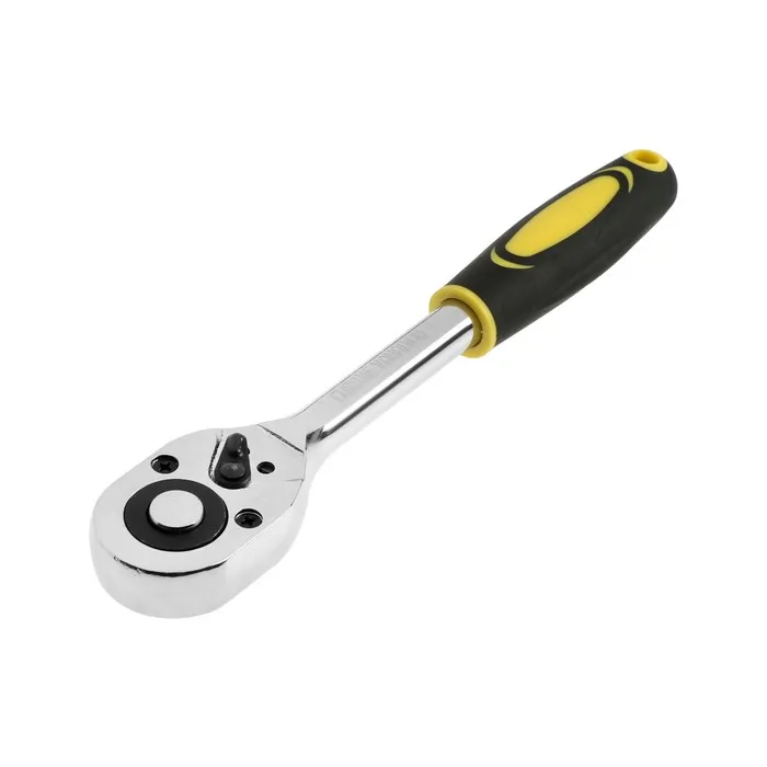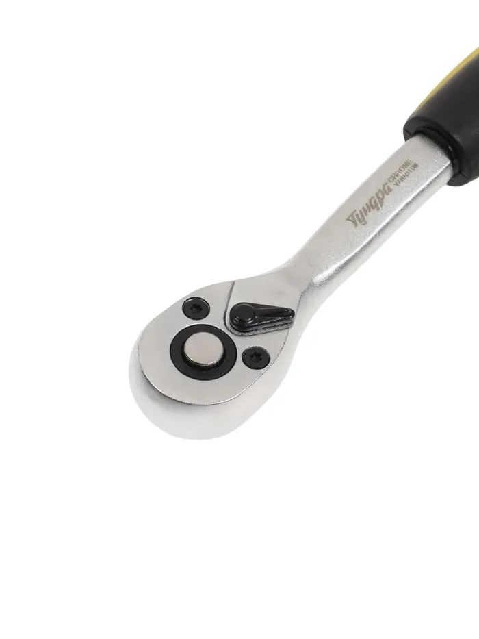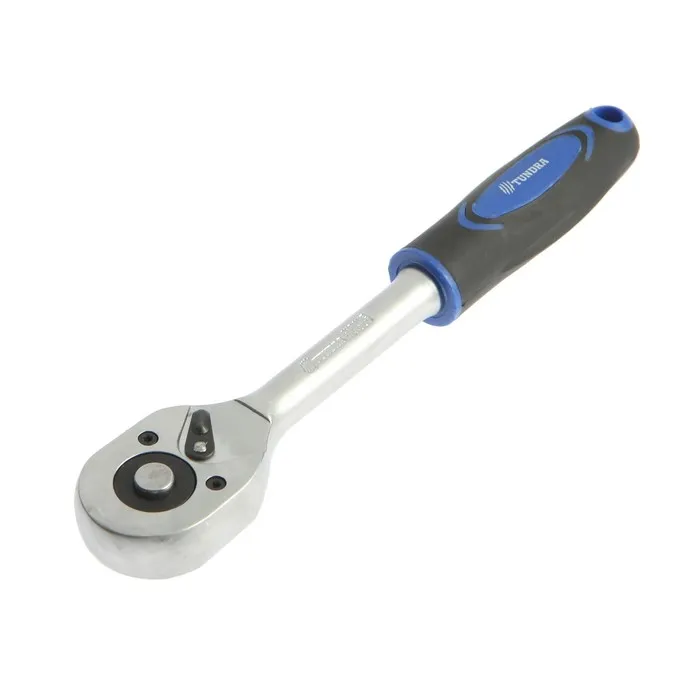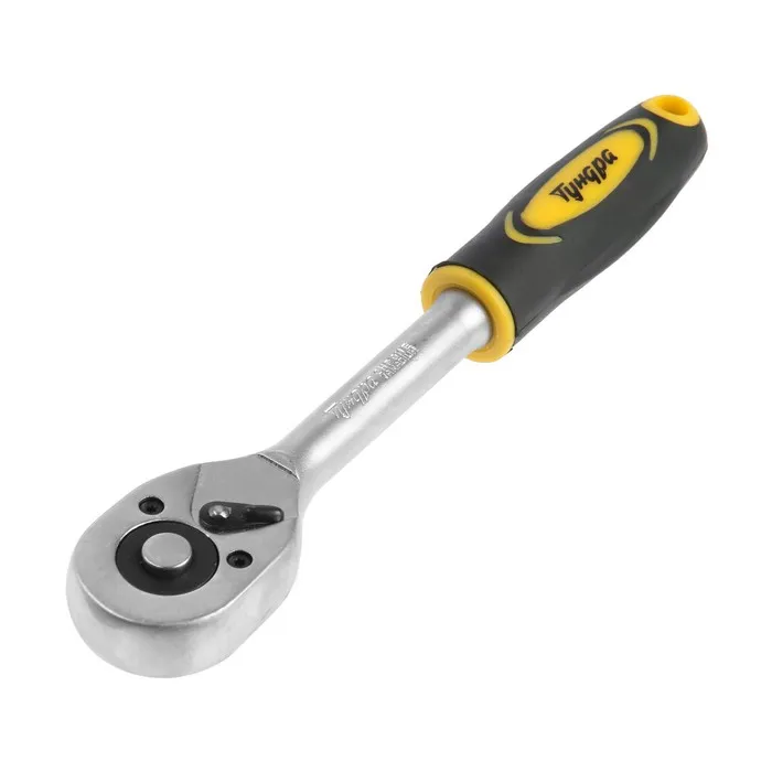 Вороток с трещоткой ТУНДРА предназначен для монтажа и демонтажа крепёжных элементов. Прорезиненная рукоятка обеспечивает надёжный хват инструмента. Вместе с торцевыми головками изделие заменит несколько гаечных ключей.