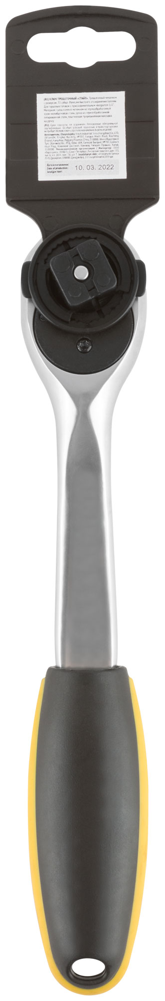 Вороток CrV 1/2", 72 зубца с черно-желтой прорезиненной ручкой для профессионального использования