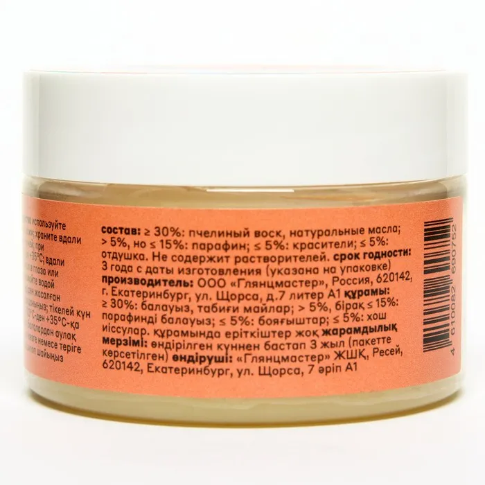 1. В состав входит натуральный пчелиный воск, природные жиры и масла.