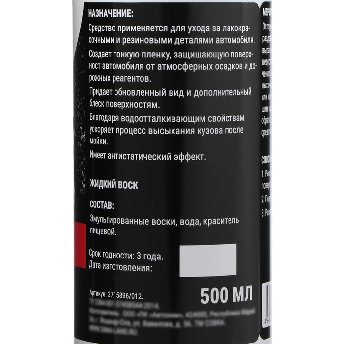 Воск для кузова Grand Caratt, быстрая сушка, 500 мл, триггер — Характеристики