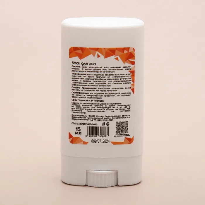 Удобство использования: формат стика позволяет легко наносить средство перед прогулкой или выставкой, обеспечивая равномерное распределение воска по поверхности лап.