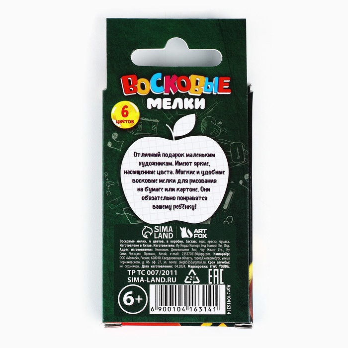 Восковые мелки, 6 цветов «Школьные» — Характеристики