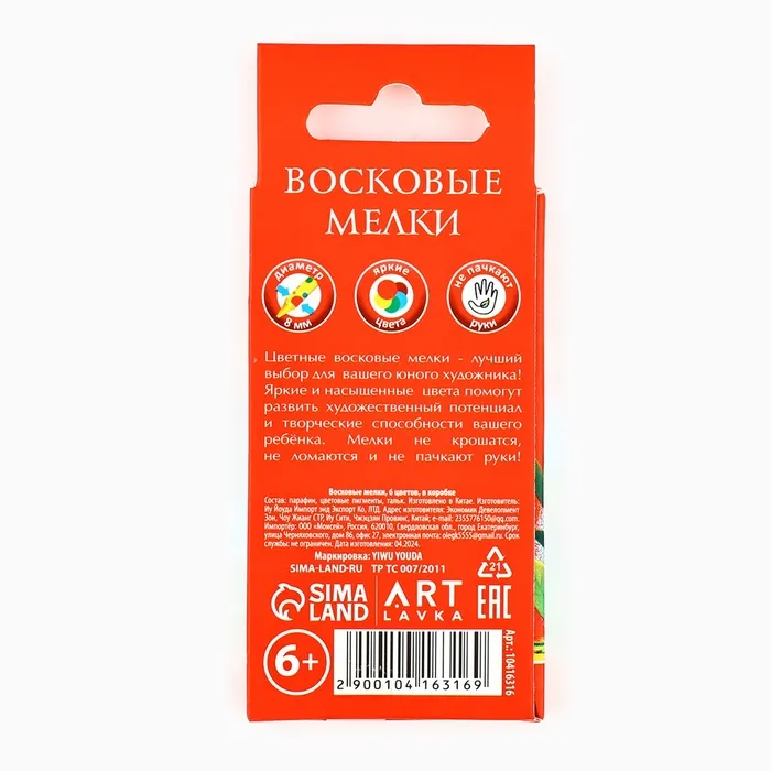 Восковые мелки, 6 цветов ТМ Артлавка — Характеристики