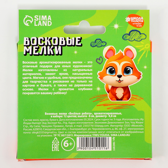Восковые мелки - карандаши ароматизированные «Весёлые ребята», 12 цветов — Характеристики