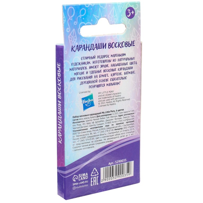 Восковые мелки - карандаши My Little Pony, 6 цветов — Характеристики