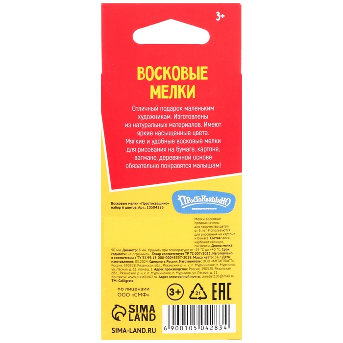 Восковые мелки - карандаши «Простоквашино», 6 цветов — Характеристики