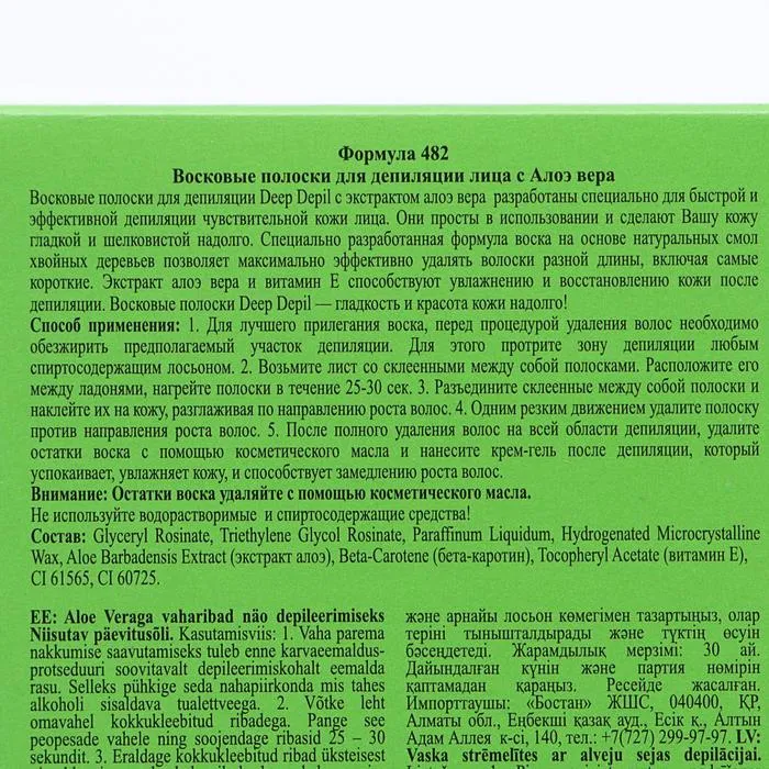 Восковые полоски для депиляции лица Deep Depil, с алоэ вера, 20 шт. — Характеристики