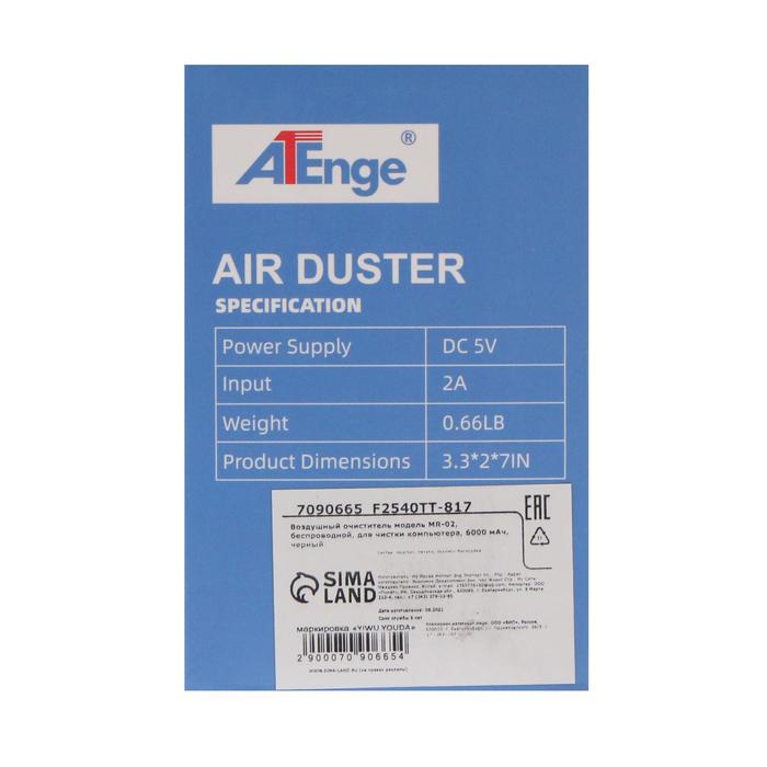 Воздуходувка для чистки компьютера и клавиатуры от пыли, беспроводная MR-02, 6000 мАч, чёрная — Характеристики