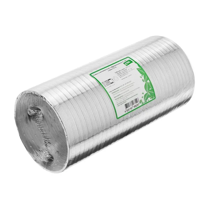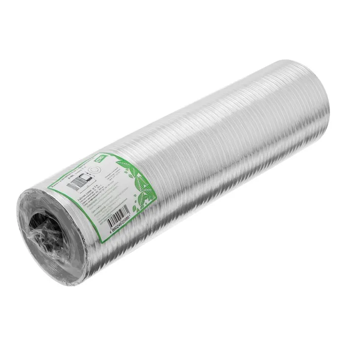 Гофрированная конструкция позволит вам при монтаже сгибать воздуховод под нужными углами. В сжатом виде длина изделия составляет 0,74 м, а в растянутом может достигать до 3 м, что значительно экономит пространство в помещении.