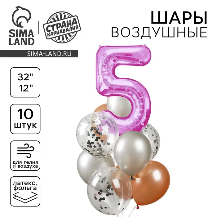 Воздушные шары, букет «5 лет», набор 10 шт., с конфетти — Характеристики