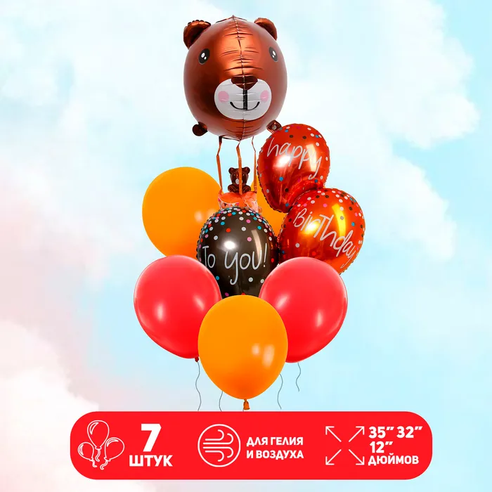 Воздушные шары, букет «Happy Birthday. Мишка», набор 7 шт. — Характеристики