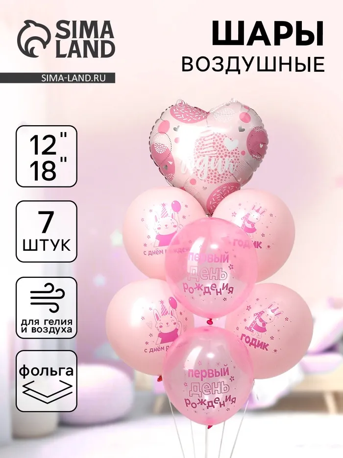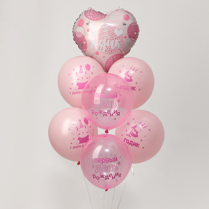 Воздушные шары, букет «Один годик», набор 7 шт., розовые — Характеристики