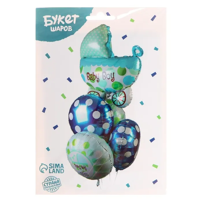 Воздушные шары, букет «Рождение мальчика», набор 5 шт. — Характеристики