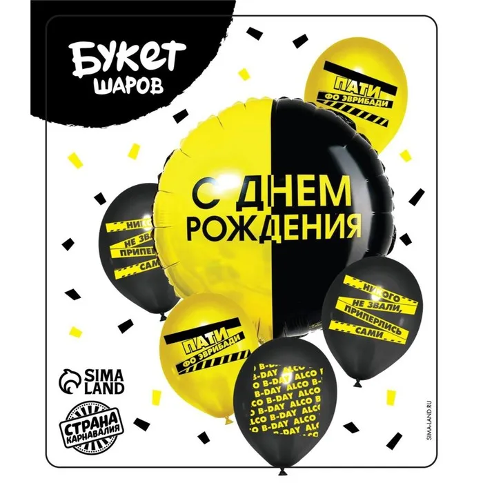 Воздушные шары, букет «С Днём Рождения», набор 6 шт. — Характеристики