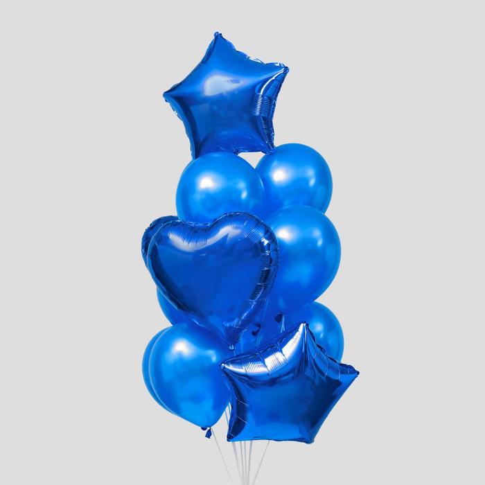 Воздушные шары, букет «Сердца и звёзды», набор 14 шт., синие — Характеристики