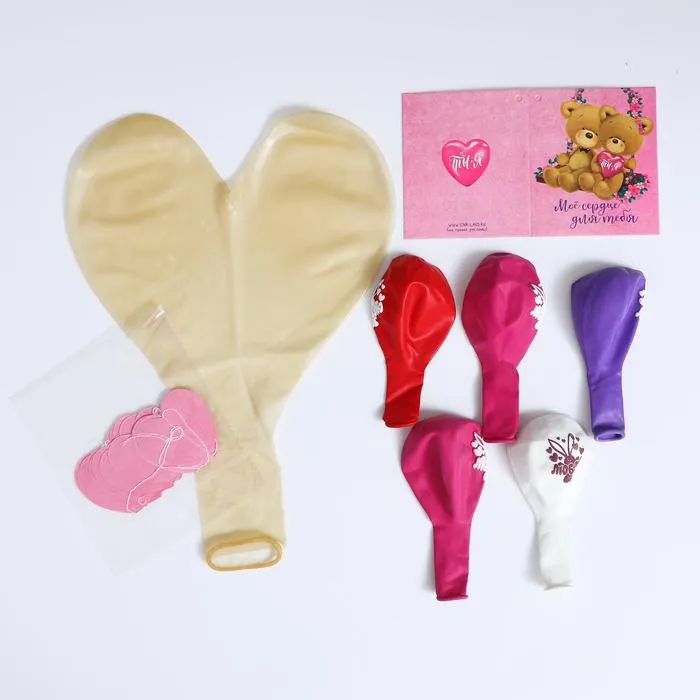 Воздушные шары, букет «Сердце», с гирляндой и открыткой — Характеристики