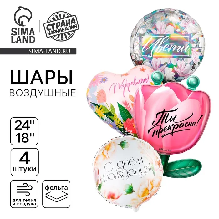 Воздушные шары, букет «Цветы», набор 4 шт. — Характеристики