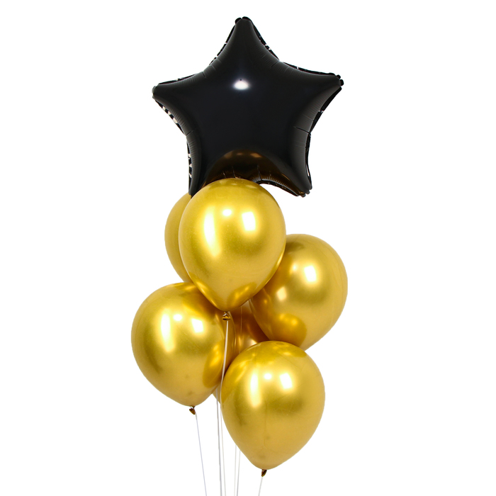 Воздушные шары, букет «Звезда», набор 7 шт., золотые, хром — Характеристики