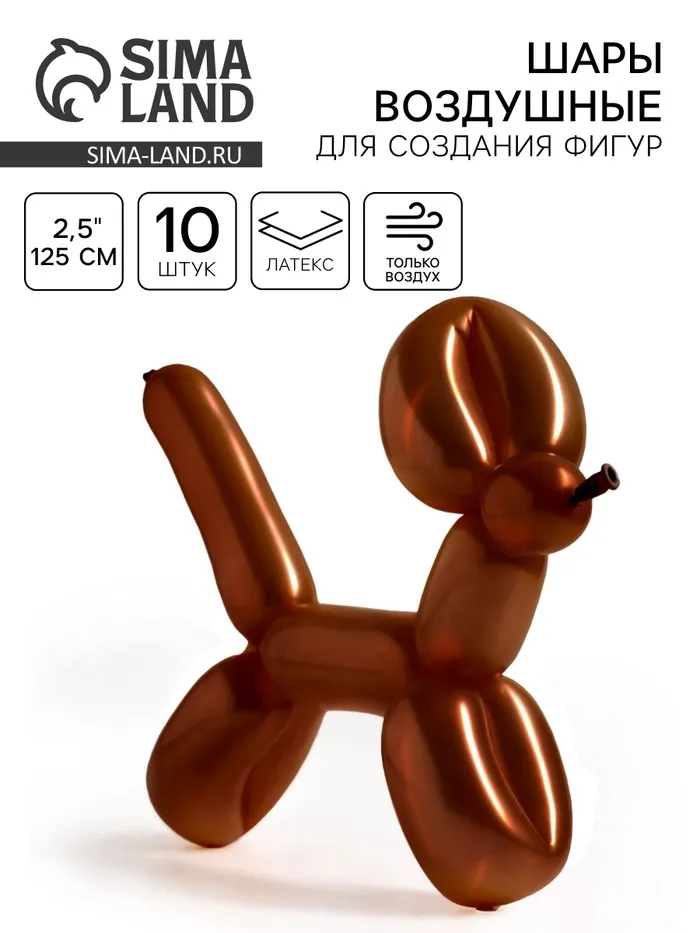 Воздушные шары для моделирования 125 см, d=2.5 см, 10 шт., макарунс, шоколадные — Характеристики