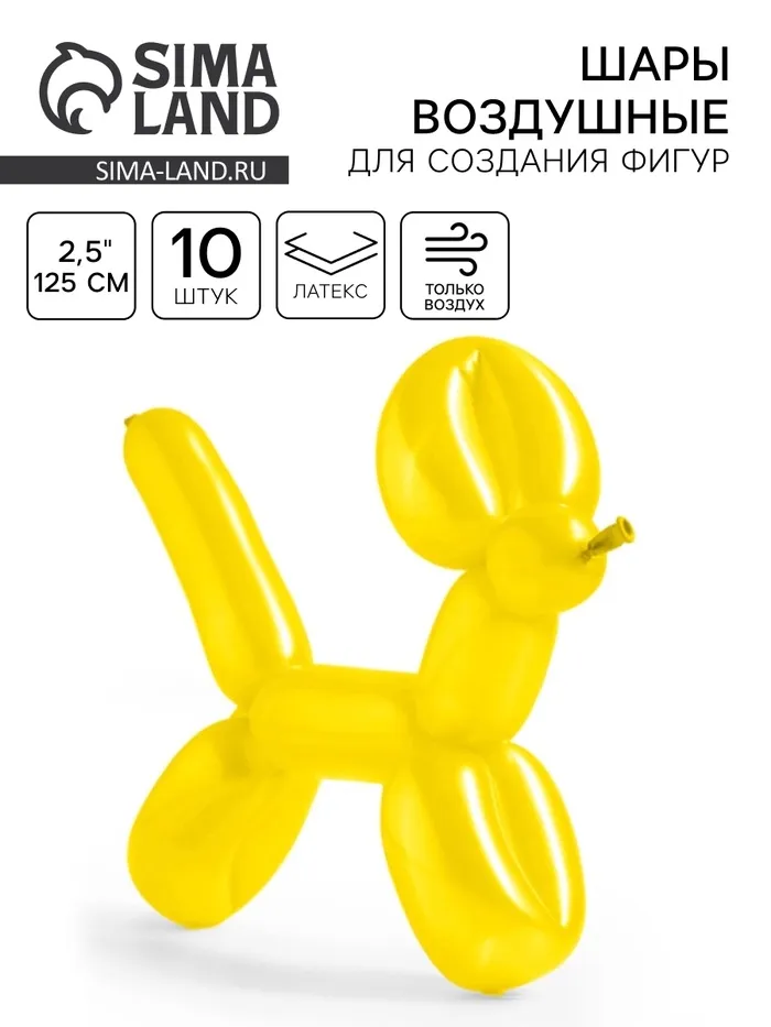 Воздушные шары для моделирования 125 см, d=2.5 см, 10 шт., пастель, жёлтые — Характеристики