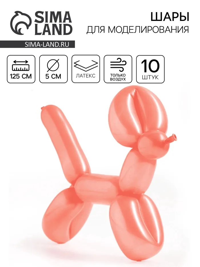Воздушные шары для моделирования 125 см, d=5 см, 10 шт., макарунс, персиковые — Характеристики