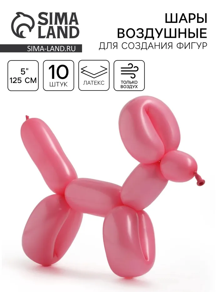 Воздушные шары для моделирования 125 см, d=5 см, 10 шт., пастель, розовые — Характеристики