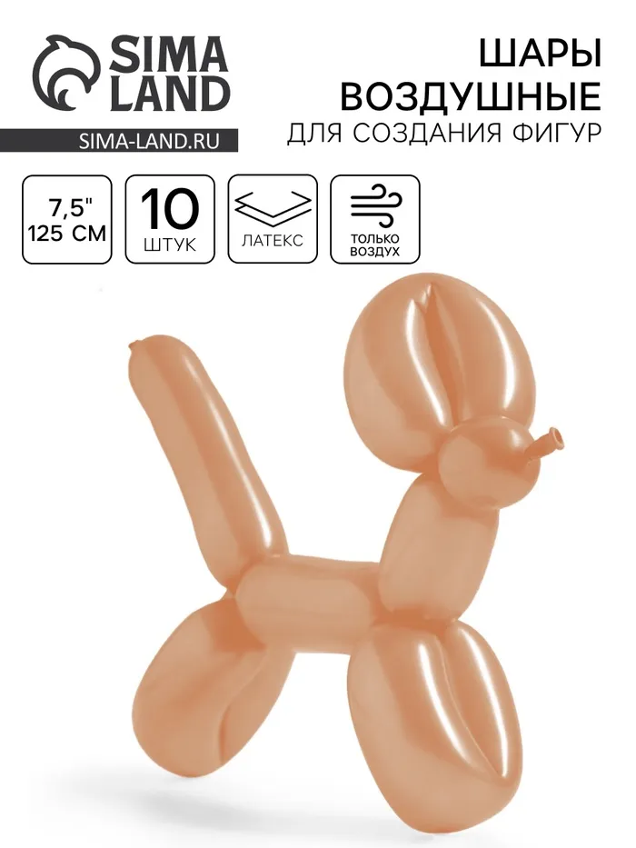 Воздушные шары для моделирования 125 см, d=7.5 см, 10 шт., макарунс, коричневые — Характеристики