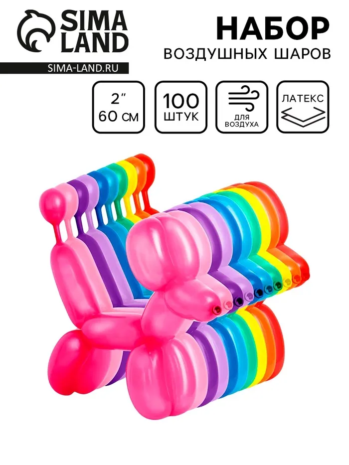 Воздушные шары для моделирования 150 см, d=5 см, 100 шт., МИКС — Характеристики