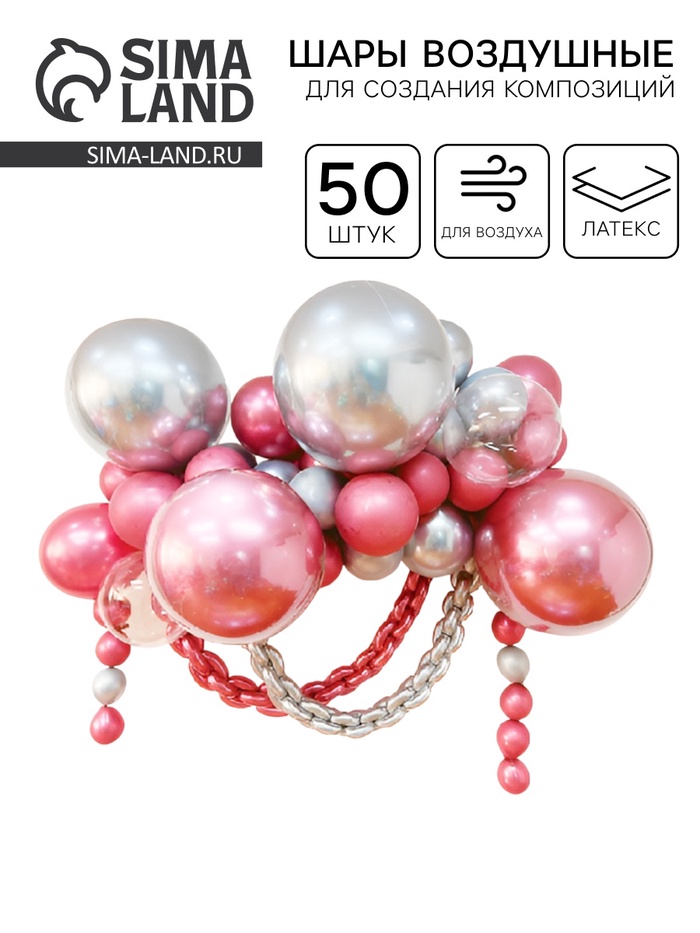 Воздушные шары для оформления фотозоны, набор 50 шт., серебро, розовый — Характеристики