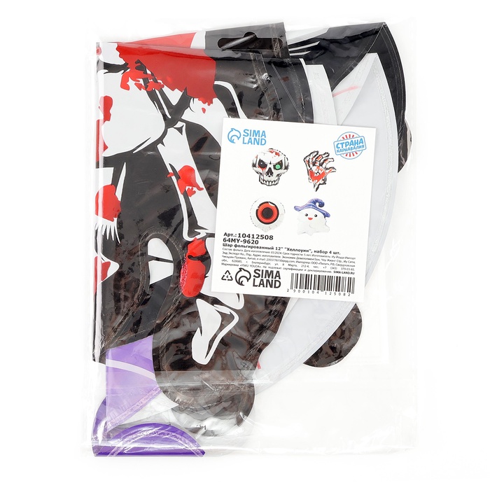Воздушные шары фольгированные 12", набор «Хеллоуин», 4 шт., для палочки — Характеристики