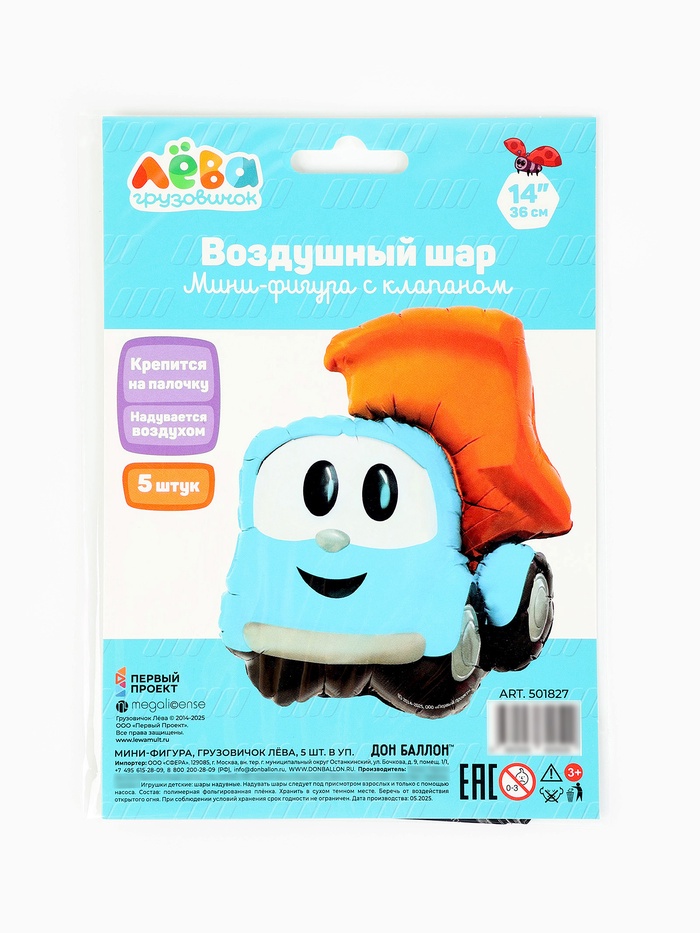 Воздушные шары фольгированные 14" «Грузовичок Лева», 5 шт., под воздух — Характеристики