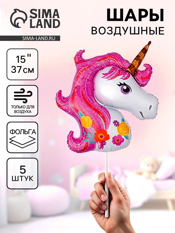 Воздушные шары фольгированные 15" «Единорог розовый, цветочный», 5 шт. — Характеристики
