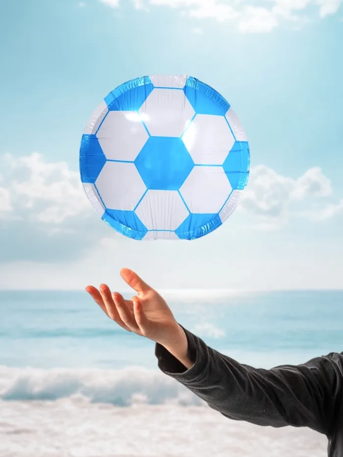 Идеально подойдёт для футбольных матчей, тематических вечеринок, фотосессий или в качестве подарка болельщику. Шары также можно использовать для создания праздничной атмосферы в детских игровых зонах или в качестве оригинального элемента оформления спортивных секций.