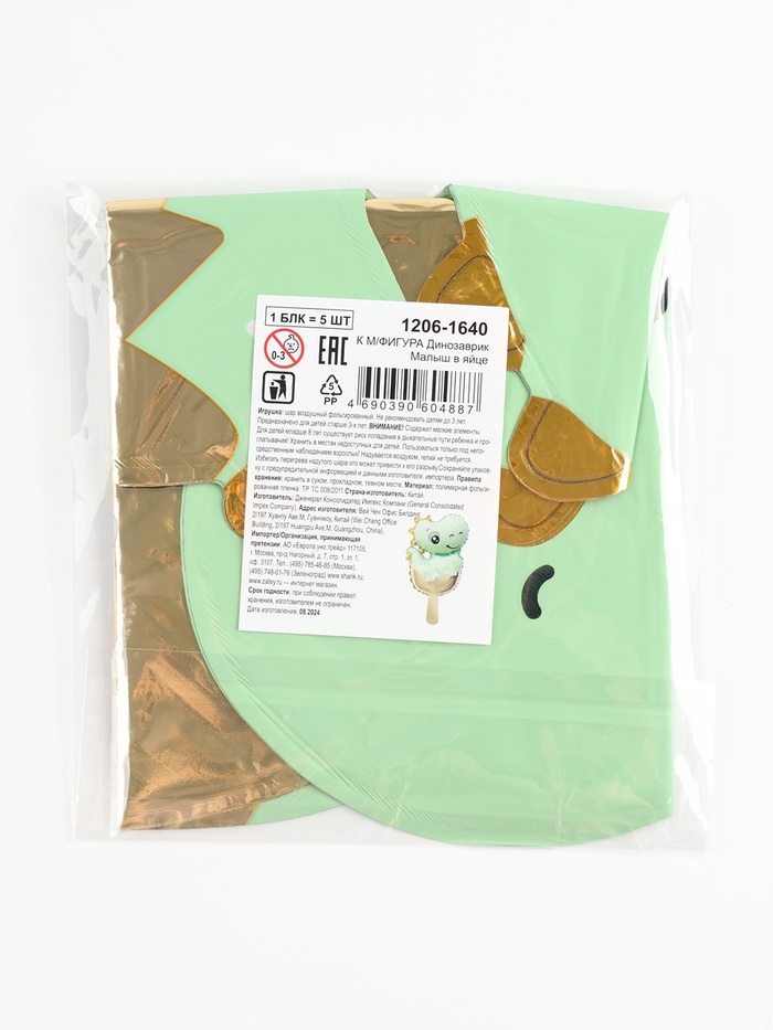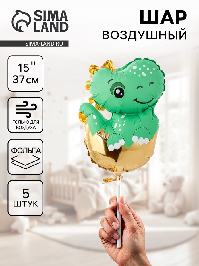 Воздушные шары фольгированные 15" «Малыш динозавр», 5 шт., для палочки — Характеристики