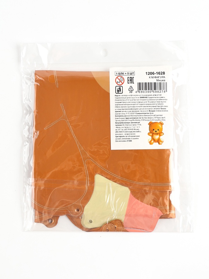 Воздушные шары фольгированные 15" «Мишка», 5 шт., для палочки — Характеристики