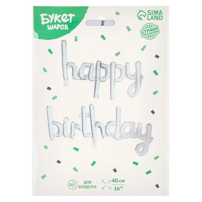 Воздушные шары фольгированные 16", гирлянда «С днём рождения», белая — Характеристики