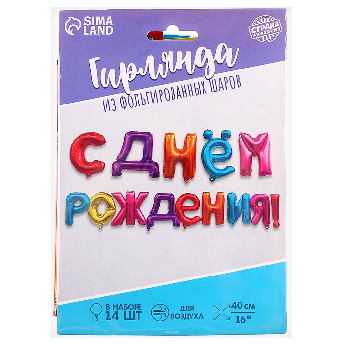 Воздушные шары фольгированные 16", гирлянда «С днём рождения», МИКС — Характеристики