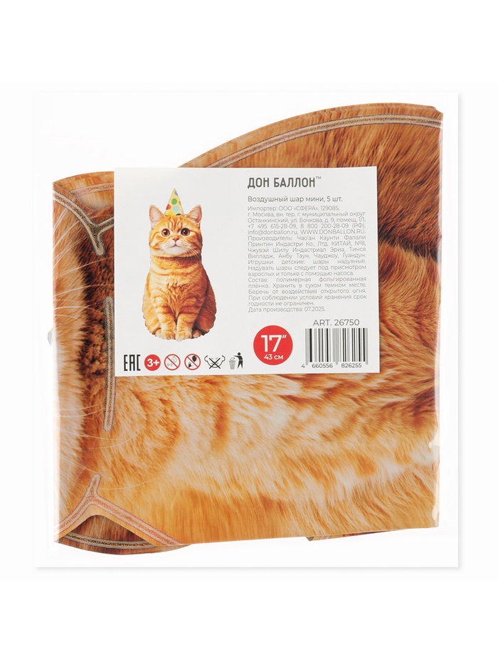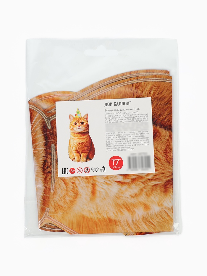 Воздушные шары фольгированные 17" «Котик в колпачке», 5 шт., для палочек — Характеристики