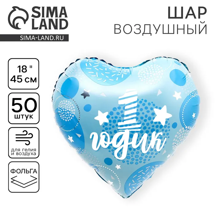 Воздушные шары фольгированные 18" «1 годик. Сынок», сердце, набор 50 шт. — Характеристики