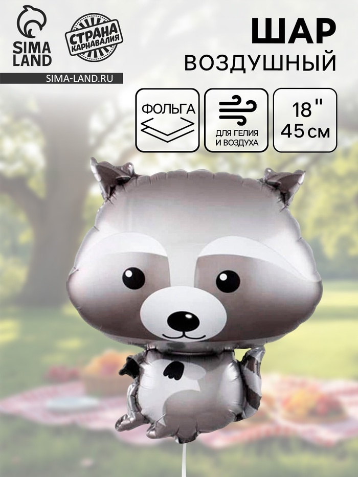 Воздушные шары фольгированные 18" «Енот» — Характеристики