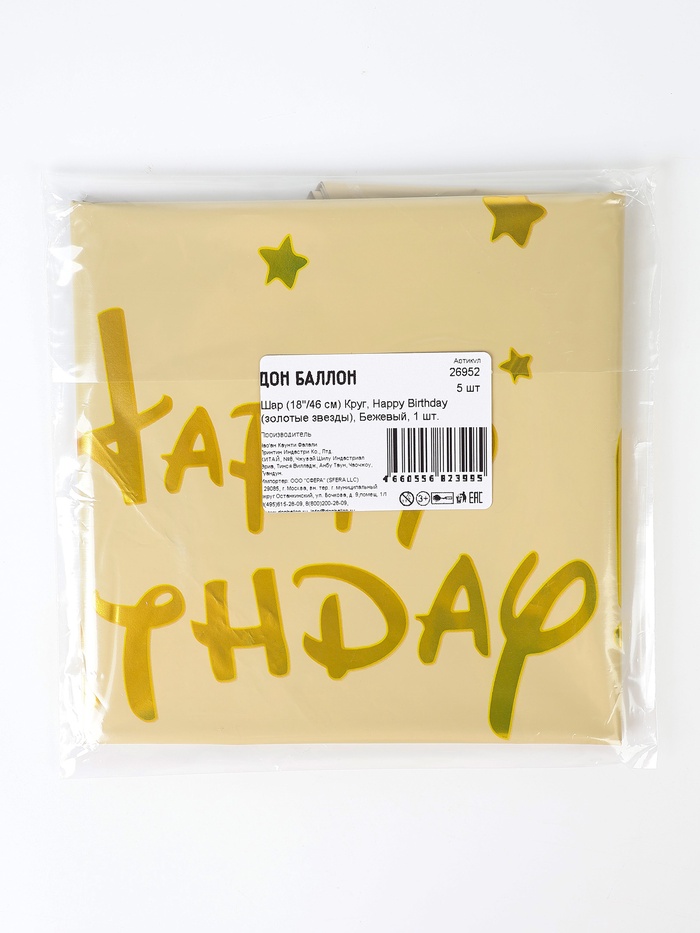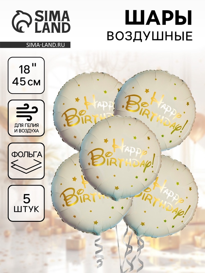 Воздушные шары фольгированные 18" «Happy Birthday. Золотые звезды», 5 шт. — Характеристики
