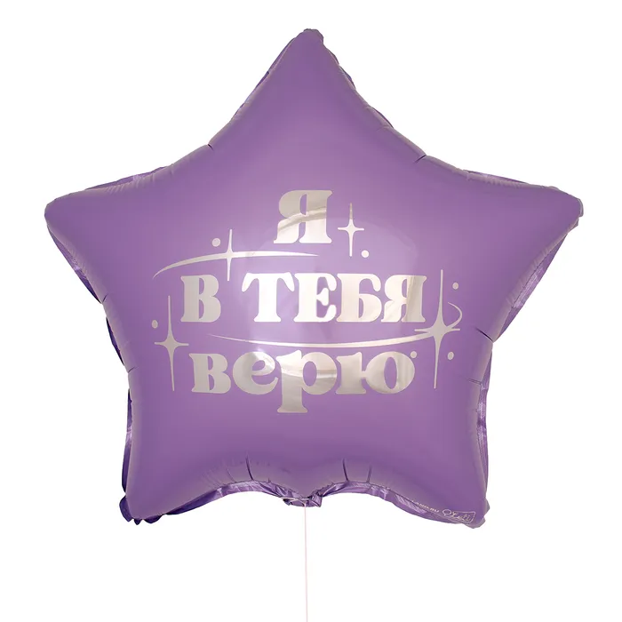 Фольгированный шар в форме звезды с мотивирующей надписью: «Я в тебя верю» подойдёт в качестве дополнения к подарку на день рождения. Также шар может стать приятным сюрпризом, например, перед важным экзаменом или собеседованием. Подарите один или несколько шаров и порадуйте близкого человека.