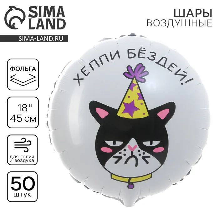 Воздушные шары фольгированные 18" «Хеппи Бёздей», круг, 50 шт. — Характеристики