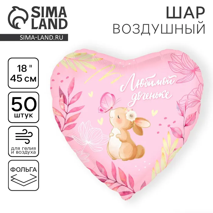Воздушные шары фольгированные 18" «Любимой доченьке», сердце, 50 шт. — Характеристики