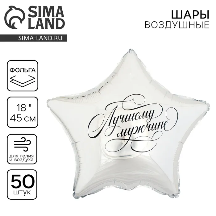 Воздушные шары фольгированные 18" «Лучшему мужчине», звезда, 50 шт. — Характеристики