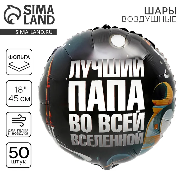 Воздушные шары фольгированные 18" «Лучший папа», круг, 50 шт. — Характеристики