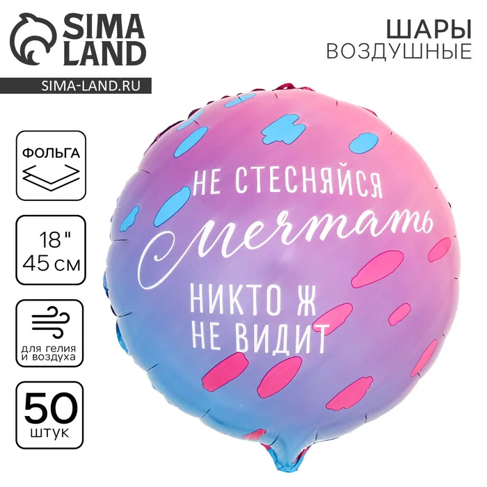 Воздушные шары фольгированные 18" «Не стесняйся мечтать», круг, 50 шт. — Характеристики