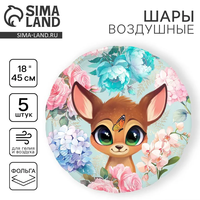 Воздушные шары фольгированные 18" «Оленёнок», круг, набор 5 шт. — Характеристики