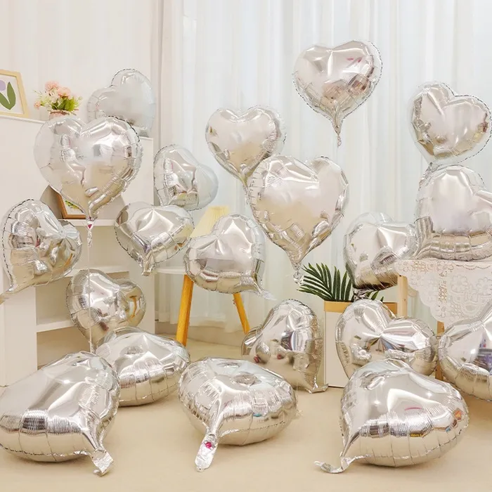 Воздушные шары фольгированные 18" «Сердце», 5 штук, серебряные — Характеристики